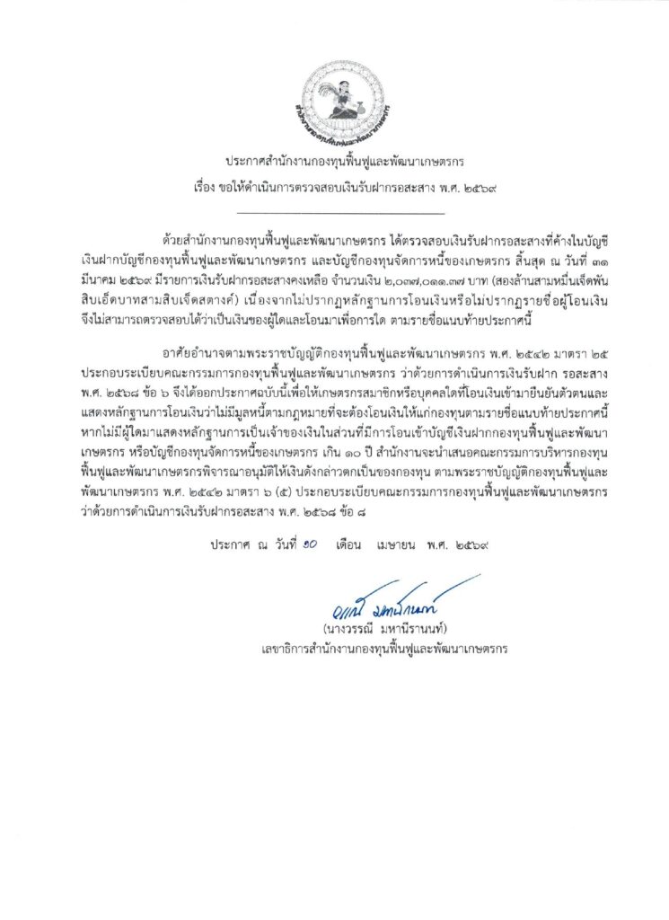 ขอให้ดำเนินการตรวจสอบเงินรับฝากสะสาง พ.ศ.2569